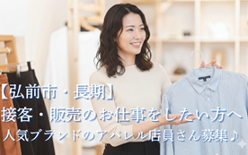弘前市で新しくアパレルスタッフの募集が始まりました(^▽^)/