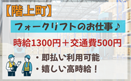 時給1300円+交通費500円 ★フォークリフトのお仕事!