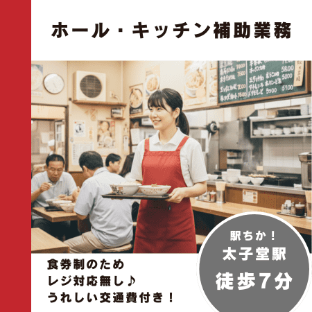 お客様のご案内や配膳などの接客、盛り付け補助、洗い場、店内清掃など付随するホール&キッチン補助作業です(^^♪