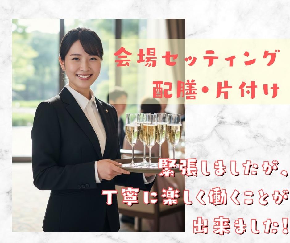 テーブルセッティング、ドリンク出し、コップ、皿片付け、テーブルバッシング等、簡単なお仕事です♪