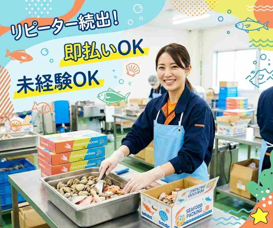 また作業量が少ない場合は・半解凍の原材料をほぐしていただいたり、商品の箱詰め業務バンドかけ業務をしていただきま...