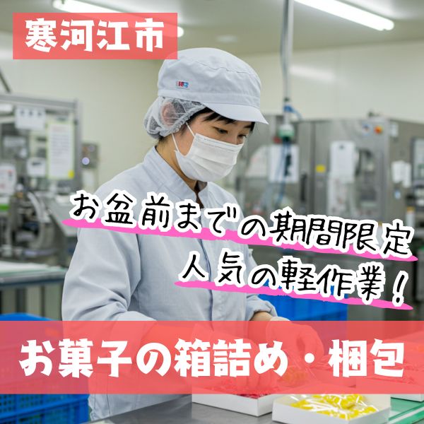 誰でもカンタン軽作業!お菓子の梱包、出荷補助業務