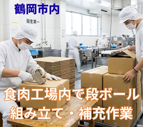 食肉工場内で段ボール組立のお仕事頂戴いたしました!