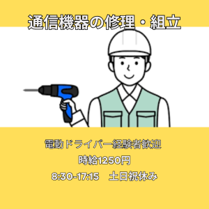 【基本日勤♪】通信機器の修理・組立【福島市】