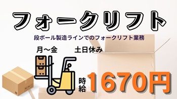 【高時給1600円】フォークリフト業務・段ボール作り★