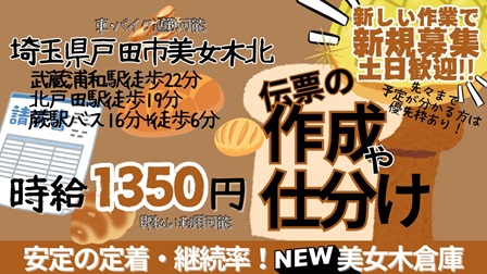募SK【伝票整理】時給1350円|戸田市美女木|即払OK