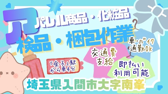 時1350円《送迎有》化粧品梱包・積み込み【加須市】