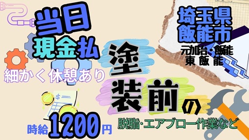 募SK【当日現金】時給1200|塗装前処理|車両通勤可