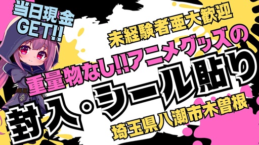 募SK【八潮市】当日現金|交通費支給|グッズ封入・シール貼り
