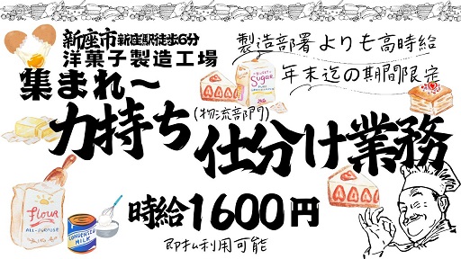 =大手洋菓子製造工場<物流>部門での作業。=