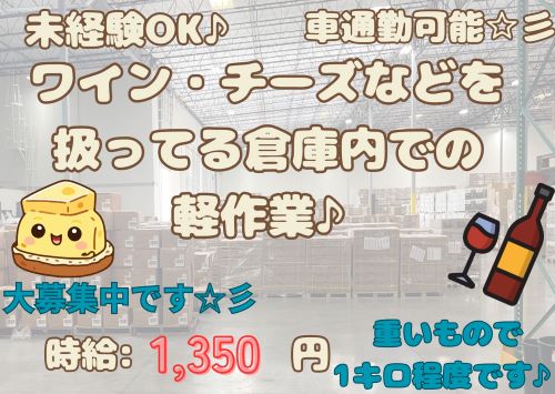 ワイン・チーズなどを扱ってる倉庫内での軽作業・ピッキング作業♪