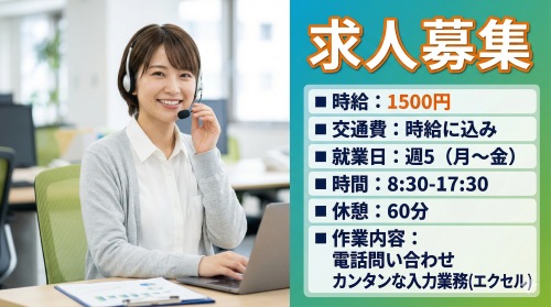 【募集中】電話問い合わせ、カンタンな入力業務(エクセル)