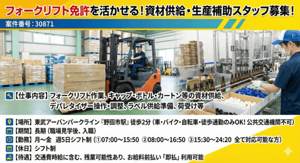 オープニング♪【高時給フォーク】車通勤ok・手元作業無し