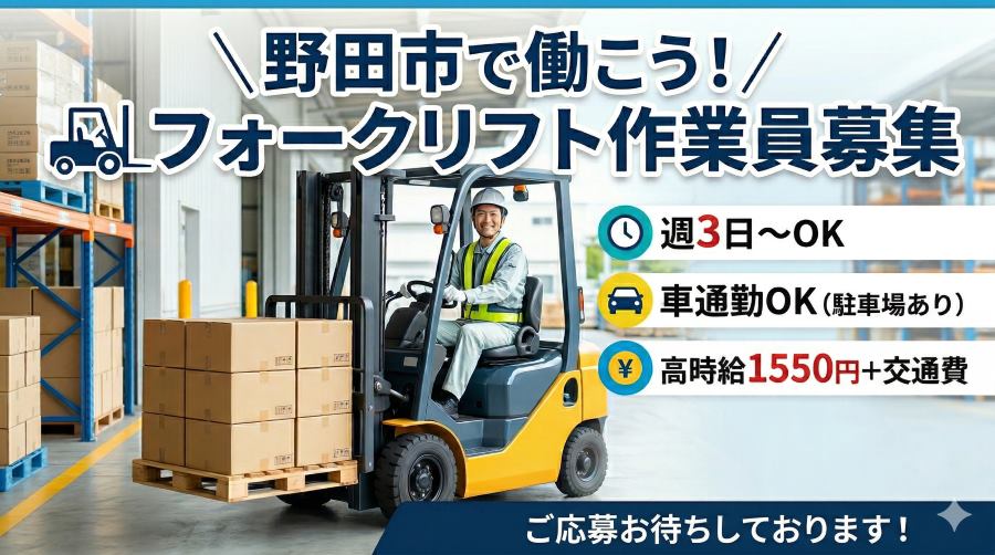 【野田市】時給1550円+交!リーチフォーク経験者大歓迎☆彡