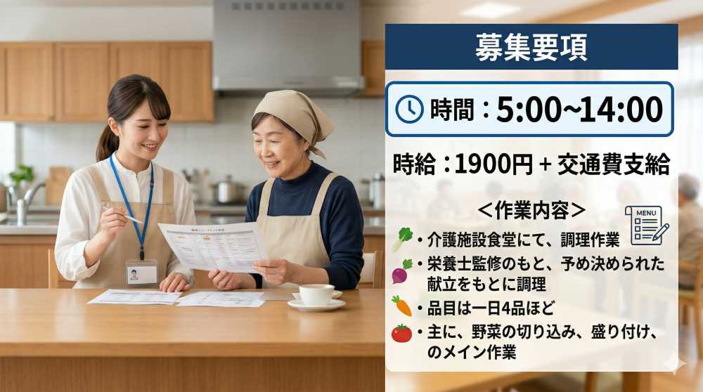 【時給1900円+交通費】介護施設での調理のお仕事♪