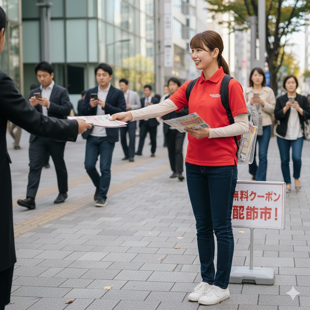 詳しい作業内容はチラシ配りです。