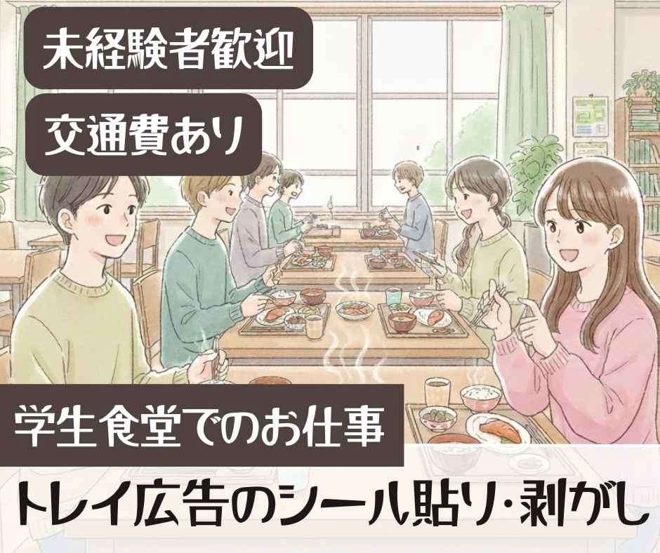 $時給1250+交通費500★食堂のトレイのシール張り替え