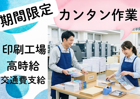【4月開始の大募集カンタン軽作業】高時給1600円◆6月末まで/印刷工場でのお仕事!送迎バス有り!
