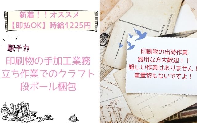 $【即払】時給1225円/小田原/チラシやハガキの検品・封入