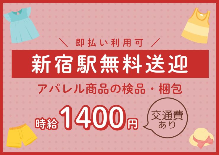 ◆《新宿》1400+交★アパレル商品のピッキング・検品・梱包♪