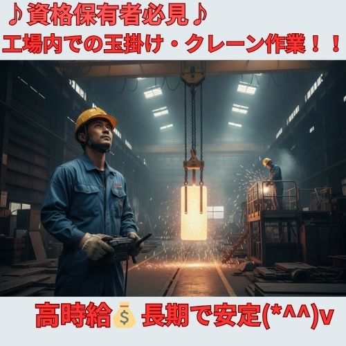 ★資格保有者必見!工場内での玉掛け・クレーン作業!
