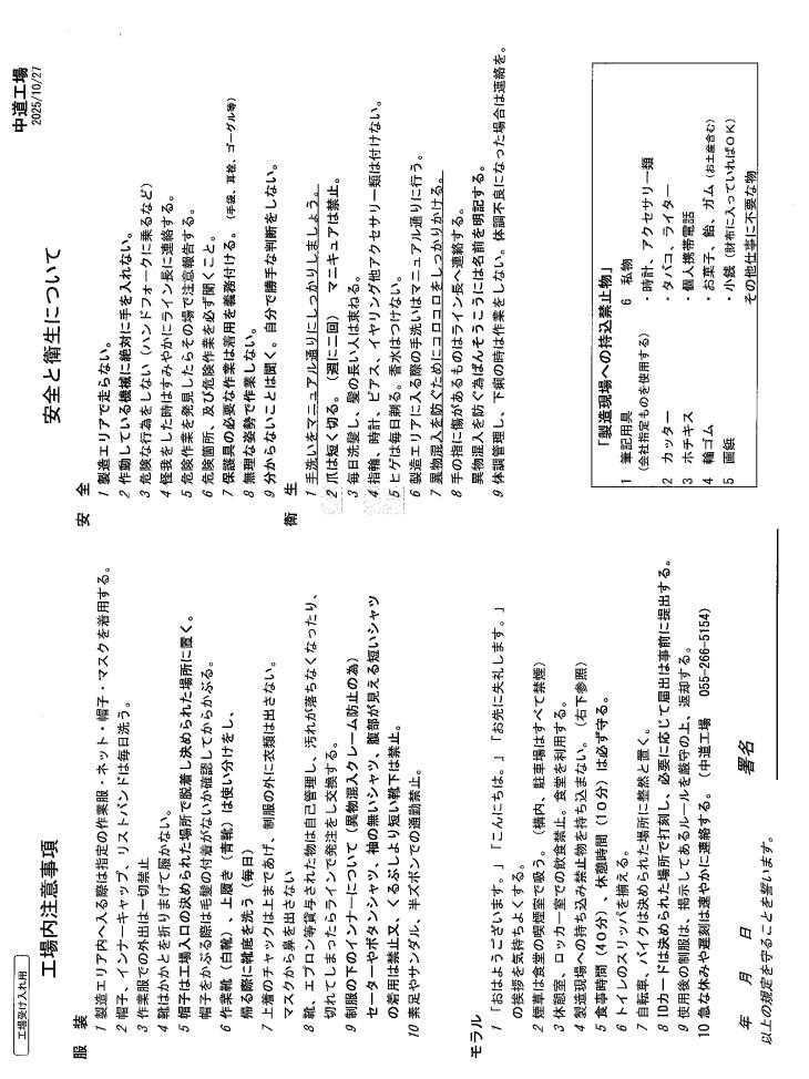期間中で最初の勤務日は始業時間の30分前までに守衛室...