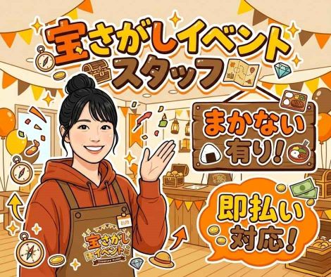 【即払い/賄いつき】時給1100円/宝探しのイベント補助/内