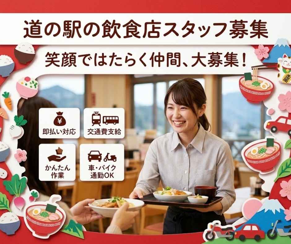 【就業先住所】〒408-0315 山梨県 北杜市 白州町白須1308 道の駅はくしゅう