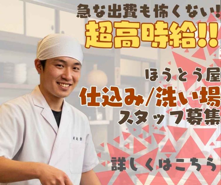 $南【特別時給】時給1600円/ほうとうの皿洗い作業