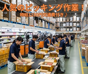 即払可♪交通費支給/未経験可/倉庫内で商品を集める軽作業
