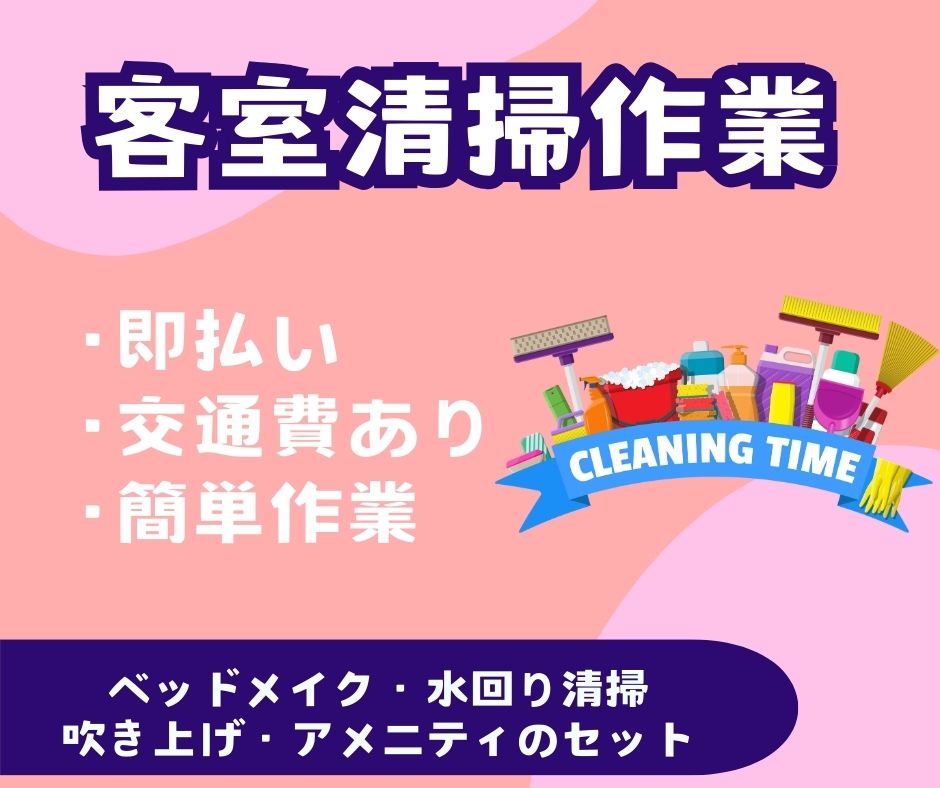 【未経験OK!時1400円+交500円】ホテル内客室の清掃業務