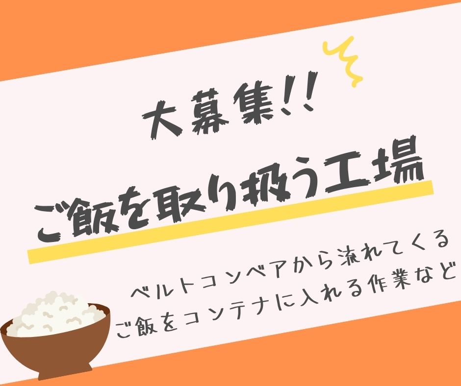 ベルトコンベアから流れてくるご飯をコンテナに入れる作業やテープ巻きをお手伝いいただきます!