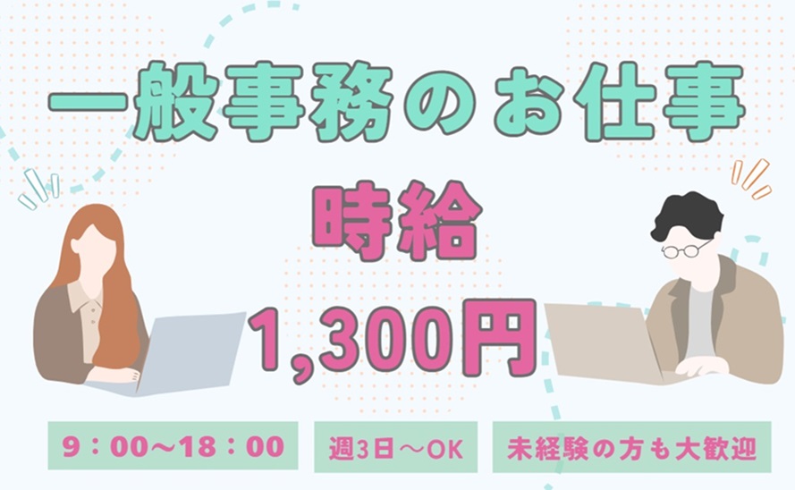 週3~OK!!未経験から始める事務業務◇時給1300円◇