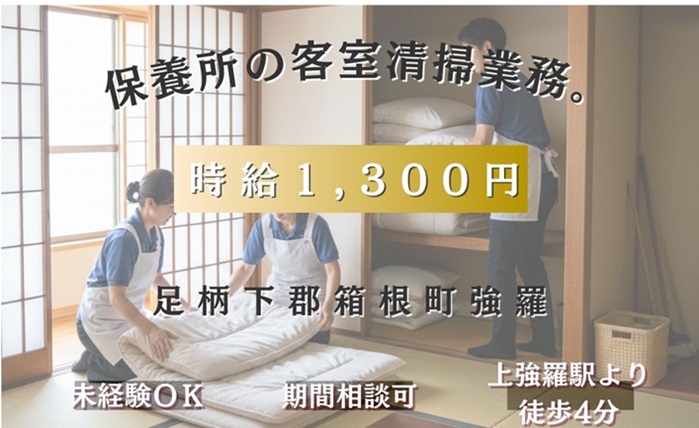 【箱根町】1日4時間のみ!未経験OK!保養所の客室清掃業務