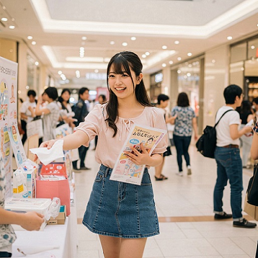 ポケットティッシュ配り、ビラ配り、イベントブースへの呼び込みのお仕事です☆