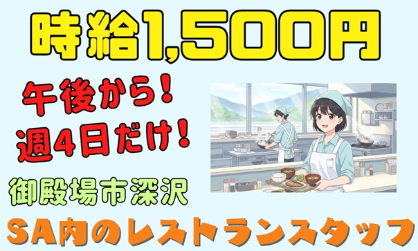 ☆短期3ヶ月☆時給1,500円!!SA内のレストランスタッフ♪
