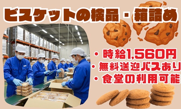 【夜勤募集】ビスケットの箱詰め・検品作業☆時給1560円