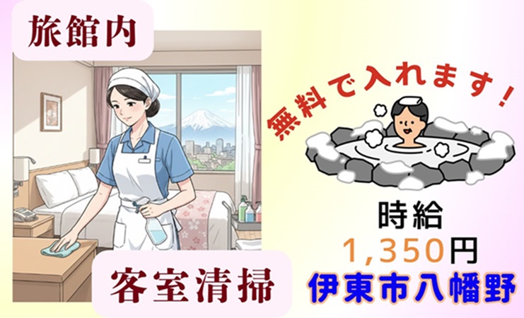 入浴無料!!【伊東市】時給1350円☆館内・客室清掃☆