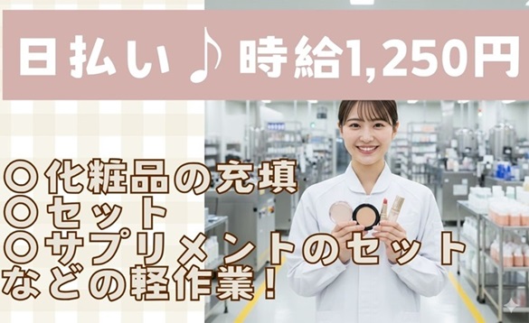 【日払い/時給1250円】清水区山原/化粧品セット作業