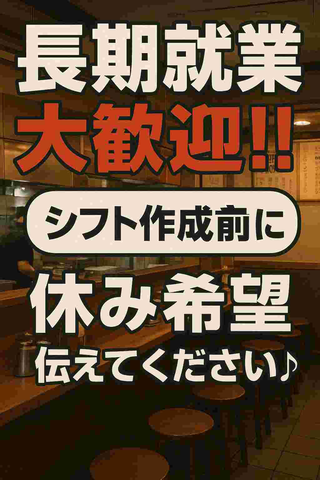 ♪♪ライフスタイルに合わせて働ける♪ 学業・子育て・副業OKの有名ラーメン店スタッフ募集♪♪