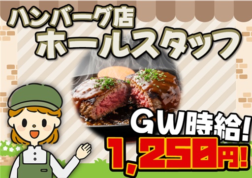 $時給1,250円!おしゃれなハンバーグ店でホールスタッフ♪【豊川市】