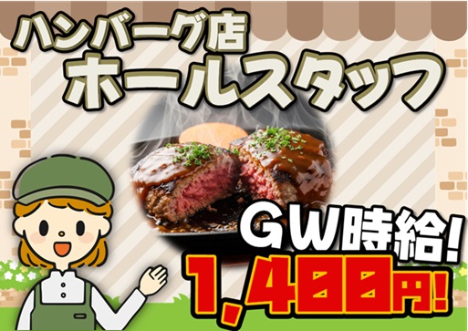 $時給1,400円!おしゃれなハンバーグ店でホールスタッフ♪【豊川市】