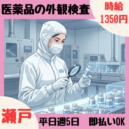 【瀬戸市】時給1350円!医薬品の包装、外観検査♪