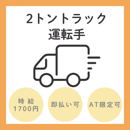 【時給1700円】精肉の配送ドライバー☆2tトラック!