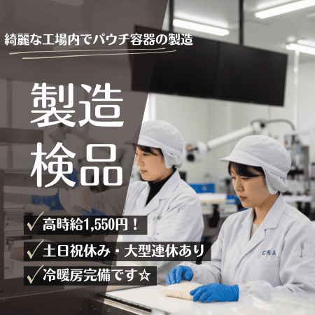 【岩倉市】高時給1550円☆パウチの検品業務★
