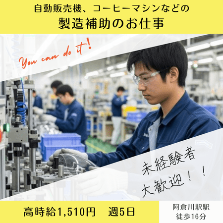 【土日祝休み】高時給1510円☆飲料機器の製造業務!