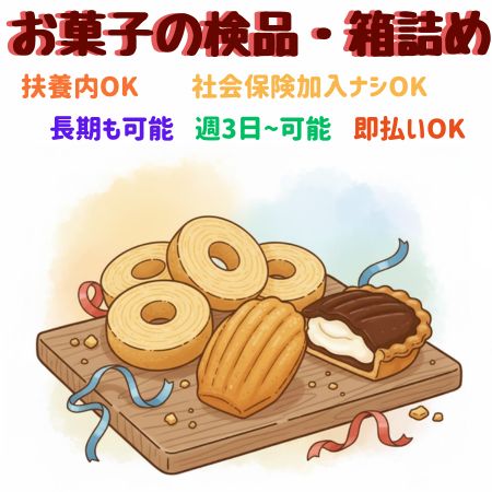 【短期1ヶ月~長期可能】週3OK★お菓子の検品、箱詰め★