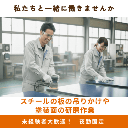 【名張/夜勤】時給1350円!土日休み!スチールの研磨作業