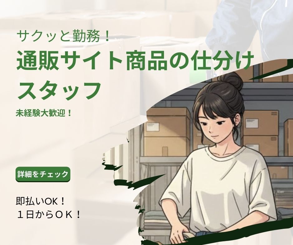 $<短時間>時給1300円+交通費支給♪通販サイト商品仕分