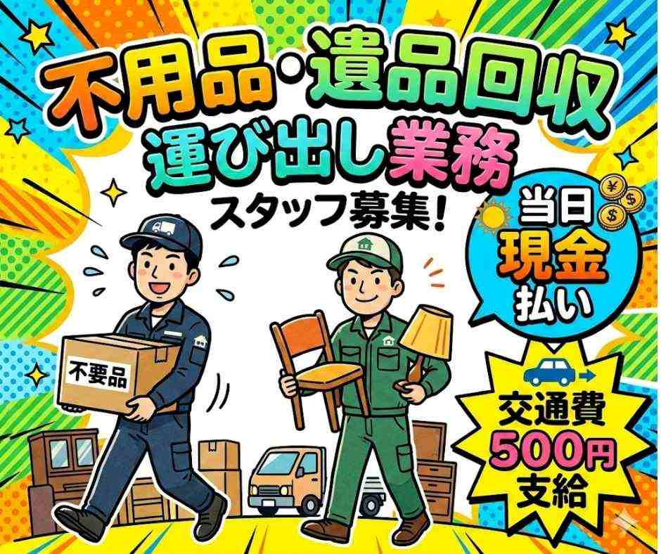 【日払】時給1300円+交通費★不用品回収・運搬作業